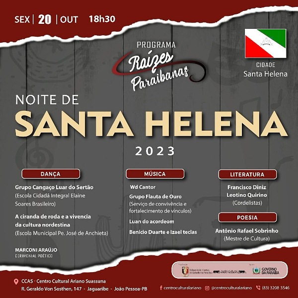 “Nós estamos organizando e levando essa apresentação para que a Paraíba, como um todo, possa também conhecer o que temos, os nossos talentos, a nossa história, a cultura que é tão enraizada e tão tradicional na história do povo de Santa Helena”, disse o prefeito João Cleber.